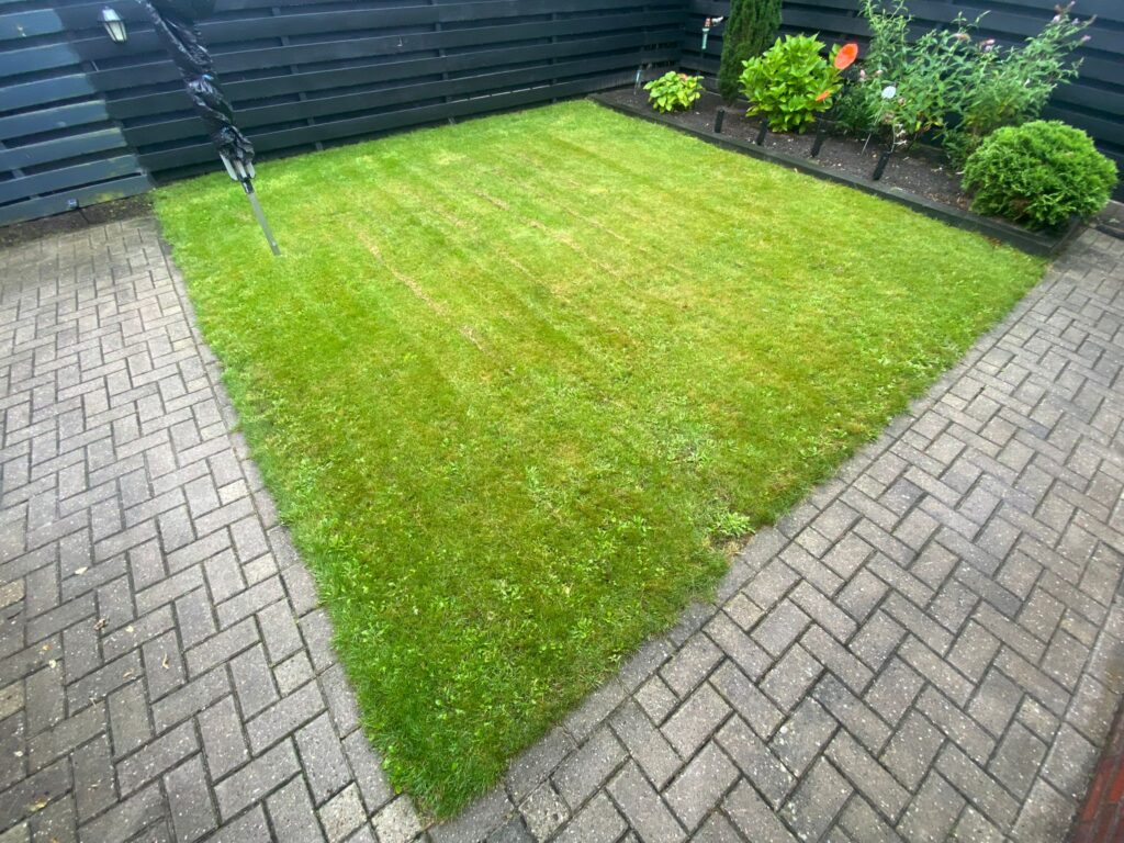 - Gazononderhoud: altijd een strak en gezond gazon dankzij regelmatig maaien, verticuteren en bemesten.